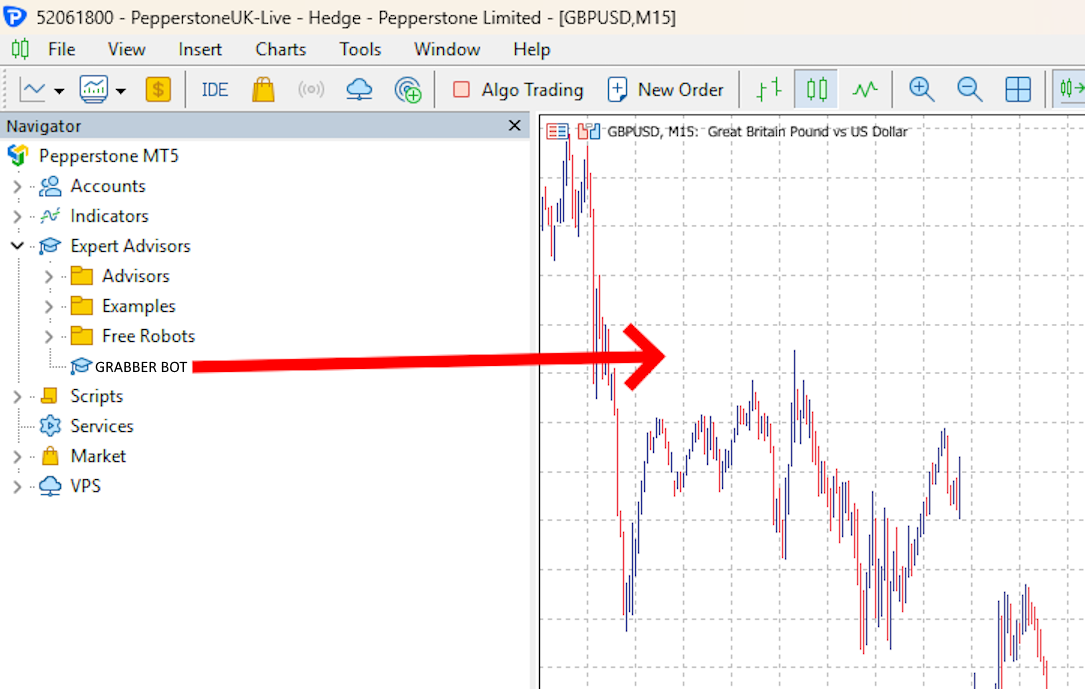 Step 6 – Drag GRABBER BOT onto the quote chart windows