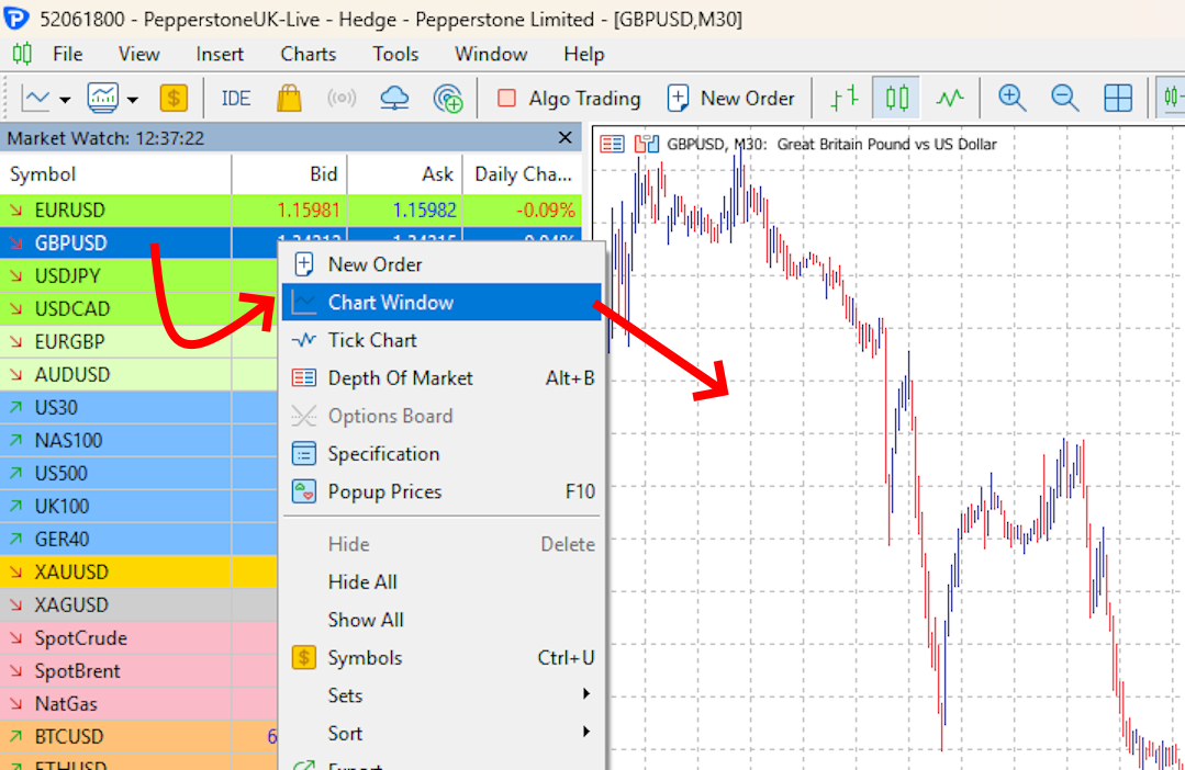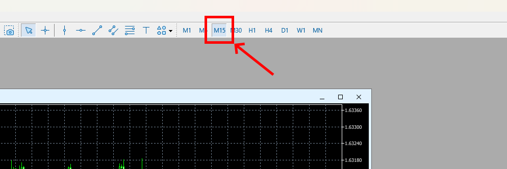 Step 3 – Set the M15 timeframe for each open quote window