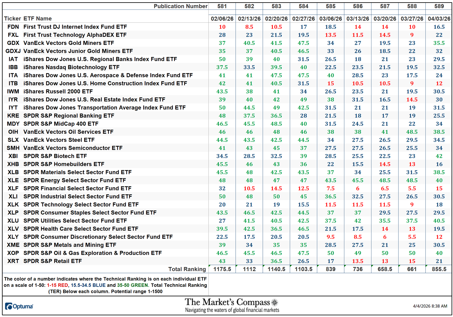 Welcome to The Market’s Compass US Index and Sector ETF Study, Week #586. As always it highlights the technical changes of the 30 US Index and Sector ETFs that I track on a weekly basis and normally publish every third week. Past publications can be accessed by paid subscribers via The Market’s Compass Substack Blog.